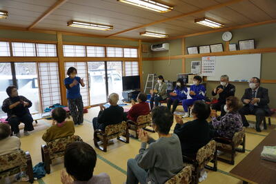 地域の集会所では、毎月、地域のおじいちゃん、おばあちゃんが集まって、「つどい」を楽しんでいます。今日は、そちらにお邪魔させていただき、交流してきました。