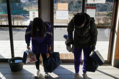 時間いっぱい清掃に取り組んだ後は、大きな声であいさつ。「ご苦労様でした!」