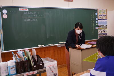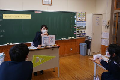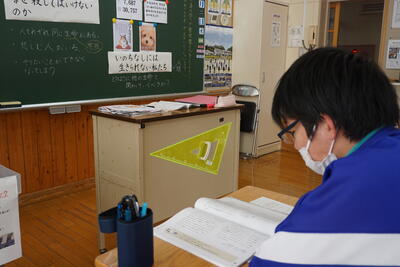 「いのちなしには、生きられない私たち(=人間)」として、考えを深めました。「普段、動物や植物のいのちをいただいて自分たちは生きているので、感謝の気持ちを忘れないことが大切ではないか。」と生徒からの意見がありました。給食や食事の時に発する「いただきます」には「いのちをいただきます」という思いが込められていることを再認識できたようです。