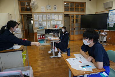 総合学習の時間にお邪魔しました。来週、実施予定の修学旅行についての事前指導です。最終的なしおりも完成し、先生と生徒で読み合わせています。家庭・学校を離れた宿泊活動になるので、最善の準備をして当日を迎えたいと思います。