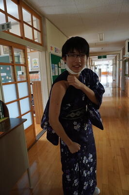アイロンがけのあとは、着付けもしました。上手に着ることが出来ました。後ろの帯もバッチリ!まるで、夏祭り紀文ですね。(もうすぐ冬が到来しますが・・・)なぜか、「この~桜吹雪が~・・・」と勘違いしている様子・・・。来年の夏は、コロナと上手につき合いながらも、夏祭りや花火大会などに浴衣を着て出かけたいものですね。