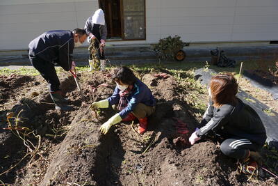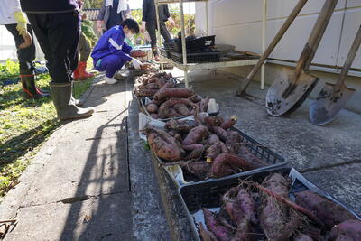 「え~ 本日は晴天なり・・・」のあいさつからは始まりませんでしたが、本年の芋掘りPARTⅡ(サツマイモ編)について生徒から始まりのあいさつと手順が示されました。