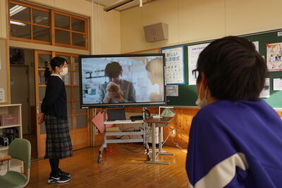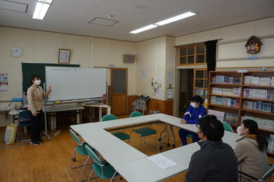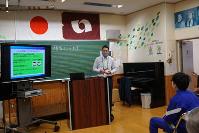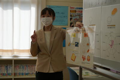 おいしい給食のあとには、桶売小学校の栄養教諭による食育講話です。保護者の方も交えて、毎日食べる「朝食」について話がありました。