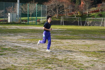 体育の時間。来週実施される持久走記録会での自己記録更新、そして先輩方の記録を破るために頑張っています。先生と相談して自分で設定したタイムでペースを守って走ります。(動画にて頑張っている姿をご覧ください。)