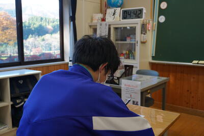 秋晴れの毎日が続いています。今日は、「学力向上の秋」にふさわしく朝の時間に基礎学力UPテスト(漢字2回目)が実施されました。