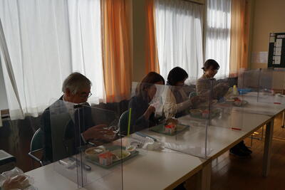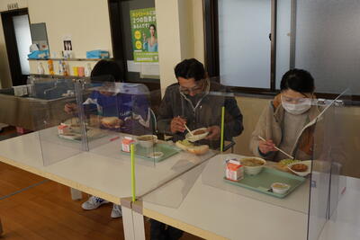 引き続き、給食試食会として保護者の方にも給食を提供しました。今日の献立はセレクト給食ということで、バーガーパンに挟むカツを「えびカツ」または「チキンカツ」から選びました。どっちが人気だったでしょうか。