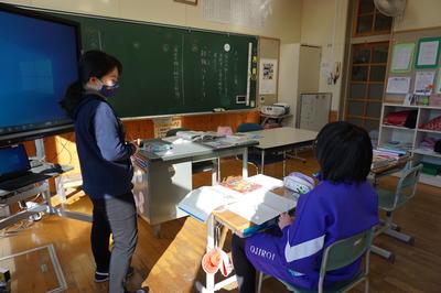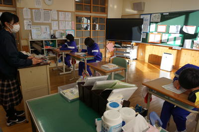 今年もいよいよ登校日が、本日を含めて4日となりました。今朝の気温も氷点下の-5℃でしたが、子ども達は全員元気に登校しました。本日の授業の様子をお伝えします。
