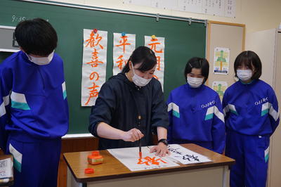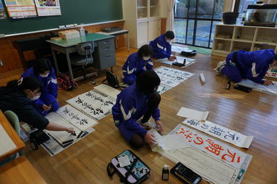 2020年12月24日 11時18分年明けの書き初め展に出品する作品の練習を行いました。それぞれの課題は小6「元朝の海」、中1「平和友好」、中3「歓喜の声」です。1月12日の書き初め大会で仕上げます。
