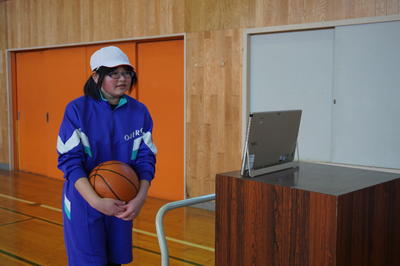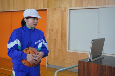 9日(水) 小中合同体育 バスケットボールの授業では、導入されたタブレットを活用し、自分のフォームのチャックをしながらシュート練習をしました。その後、少人数での試合で思いっきり汗を流しました。