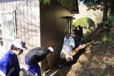 月曜日みんなが楽しみにしている収穫祭です。「小白井ファーム」で育ったおいしい野菜を調理して食べます。今日はその下準備で、中学生が落ち葉拾いをしました。ドラム缶を使って焼き芋をする際、たき付けにするものです。