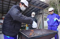 次に外に移動し、安全を十分確認した上で火をおこしました。いよいよ焼きいもスタート!