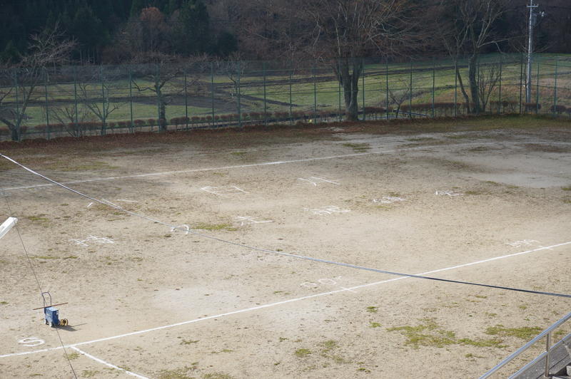 校庭には、白線で大きく「小白井持久走記録会」という文字が!体育の石井先生が書いてくださいました。