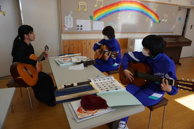 まずは3年生。音楽の学習です。ギターの演奏にチャレンジしていました。弦の押さえ方に苦労していましたが、少しずつきれいな音が出るようになっていました。目標は小白井祭で歌った「カントリーロード」だそうです。頑張ってください!