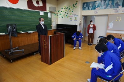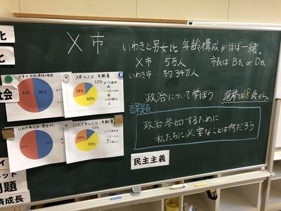本日は川前地区三校の中学生が桶売中学校に集まり、いわき市選挙管理委員会事務局の方を講師に迎えて「有権者育成」のための出前講座が行われました。