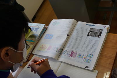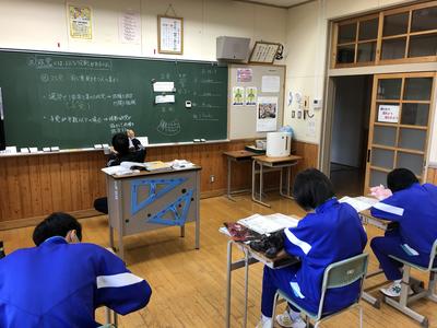 中学3年生の社会です。「政党の役割」について学んでいます。難しい政治の内容ですが、明日は、川前方部合同での「模擬選挙」が桶売中学校で行われるので、これまでの学習を少しでも生かせるように頑張っています。