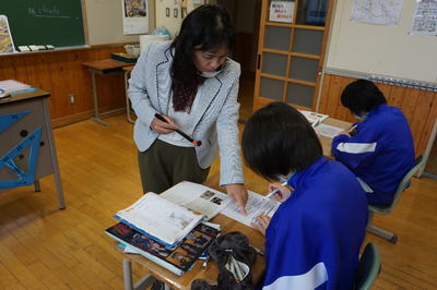 中学3年生の英語です。これまでの学習を生かしながら、読み取りの教材です。文法の復習を兼ねながら授業を進めています。