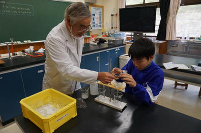 中学1年生の理科です。「気体の性質と集め方」についての学習です。アンモニアの実験に驚き、興味は高まるばかりでした。