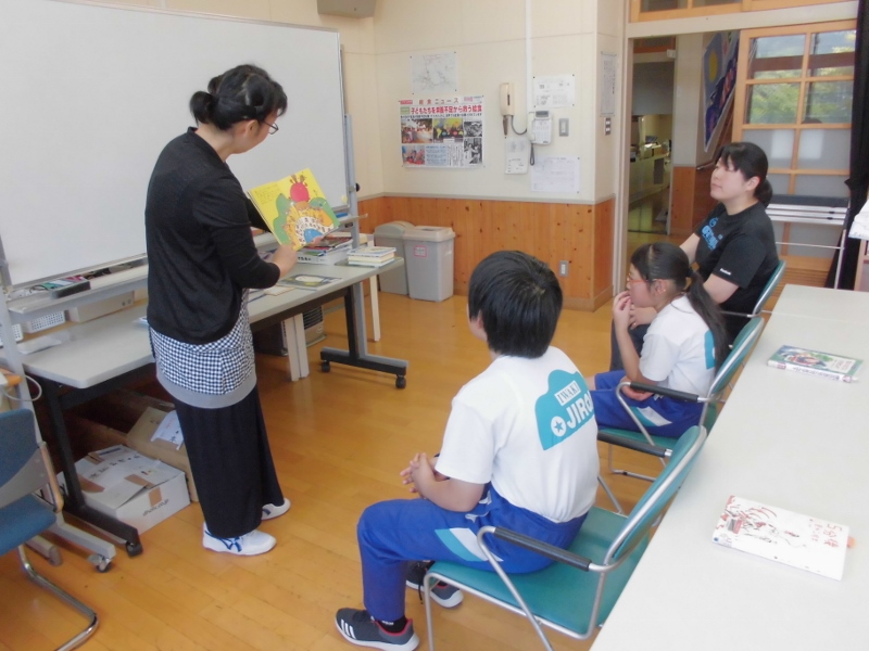 毎週月曜日は、学校司書さんに来ていただき、休み時間に小学生へ読み聞かせをしてくださいます。