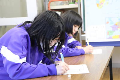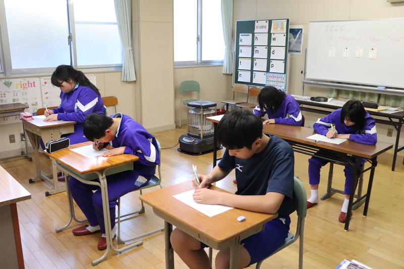 本日の6校時に、全校一斉でのスペリングコンテストを実施しました。スペリングコンテストは、これまでに学習してきた英単語40語のうち、20語が出題されます。生徒は、合格(80点以上)、そして満点を目指して真剣に取り組みました。