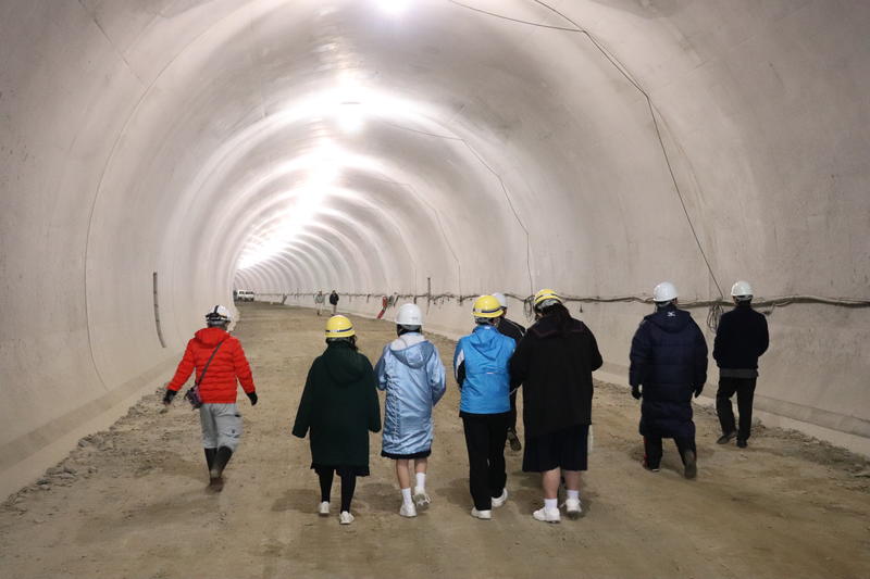出演するタレントさんもおいでになり、トンネルの中で上映される前の迫力のある映画を鑑賞できて、生徒達もとても嬉しく感じていたようです。また、理科の授業で学習した岩石についても映画の中で登場していたので、色々な意味で興味深いものとなりました。本当にありがとうございました。