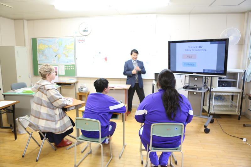 今日からALTのジェシカ先生が5日間来校します。1年生の授業では、冬休みの楽しい思い出を英語で話しました。もちろんジェシカ先生も。そして教頭先生も・・・。