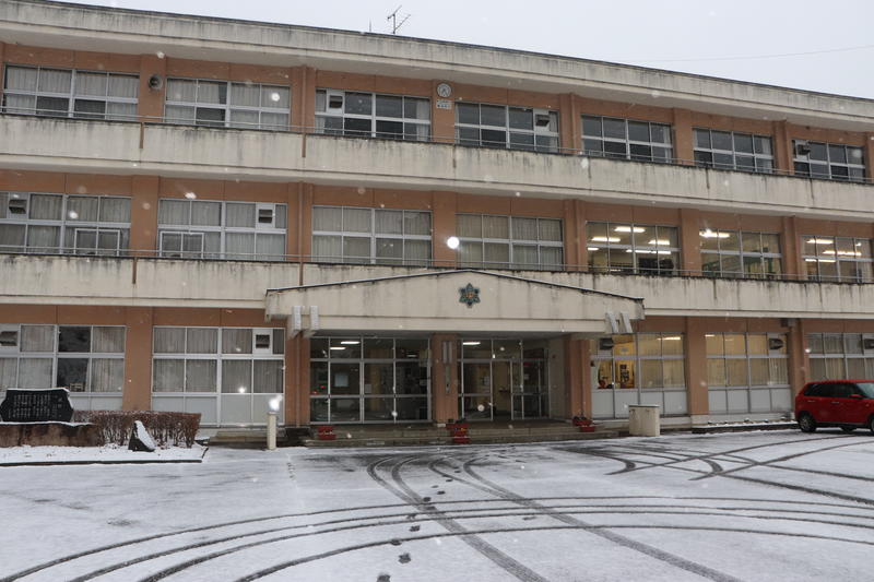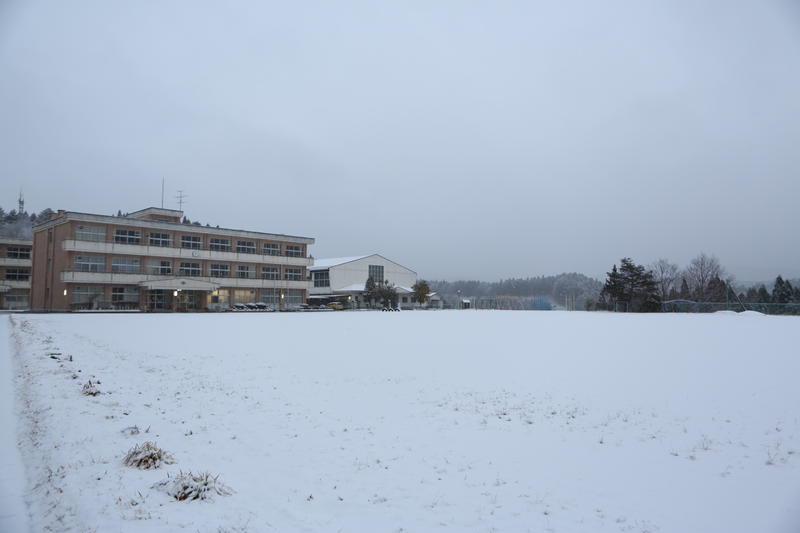 今朝の桶売は雪。気温はそれほど低く感じませんが、しんしんと降っております。校庭は真っ白です。