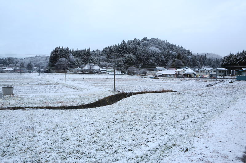 川前から右に折れ坂を登ると、昨夜から降っていた雪が、一面を白く染めていました。初、雪化粧。昨年よりだいぶ暖かい冬となっておりますが、ようやく白く美しい季節がやってきました。