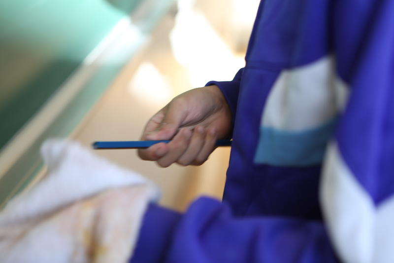 本校は全校生徒数が6名という少ない学校です。愛校清掃は6名で校舎全体を行います。50分かけて、場所を移りながら心を込めて清掃します。