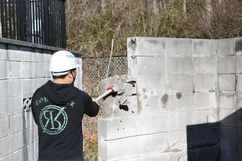 本日、校地内にあるブロックでできている塀の撤去作業を、業者さんに行っていただきました。現在9段の高さであるブロック塀を3段の高さまで撤去します。この作業により、倒壊の恐れがなくなります。