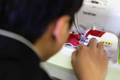 皆本当に真剣です。ミシンの音が静寂の中に響き渡ります。