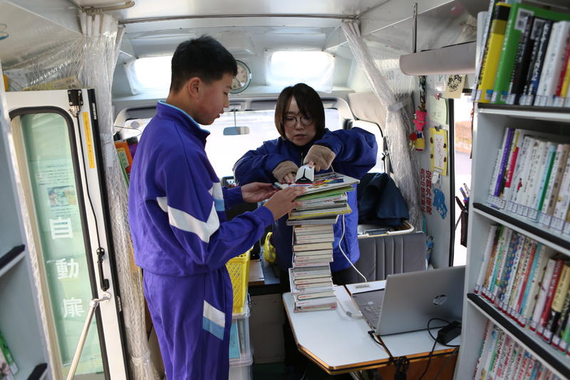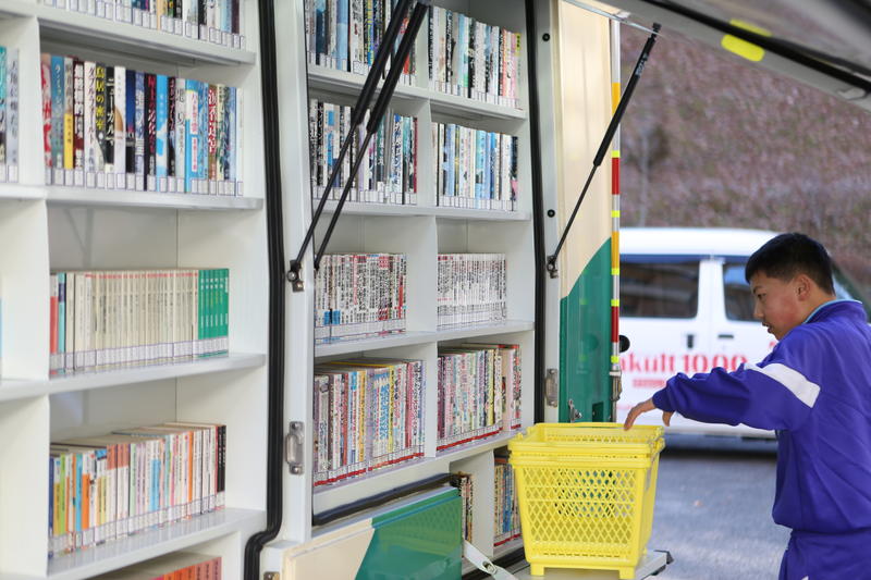 本日、月に一度の移動図書館の日です。1ヶ月で読みたい本を選んで、貸し出ししてもらいます。