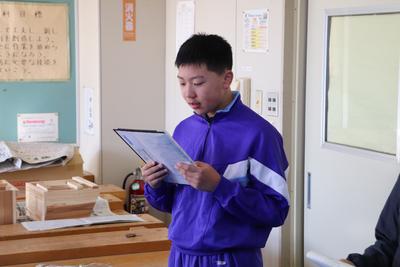 桶売中学校の校長先生からは、正月飾り作りの由縁や本日の活動の目的などお話がありました。