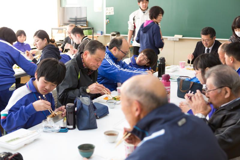 午前中の作業が終わった後は、地域の方と一緒にお昼ご飯を食べました。大勢で食べる食事はやっぱりいいものですね。