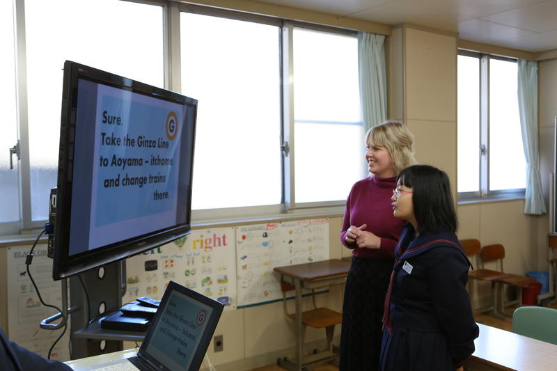 本日の3年生の英語では、東京オリンピックに向けて、国立競技場までの都内地下鉄の乗り換え案内を行いました。乗り換え案内をするお相手は・・・・