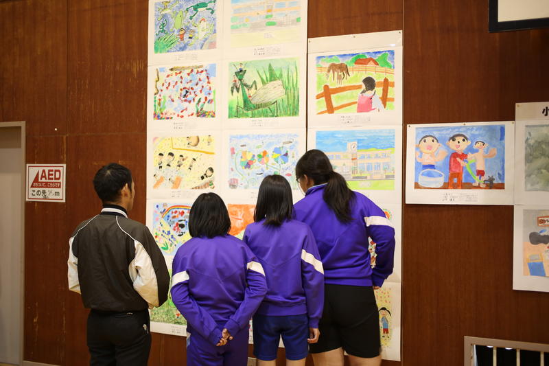 小川・川前方部書写造形巡回展の最終展示校は、桶売小中学校です。今年は小中学校全ての作品を鑑賞できるよう、体育館に展示してあります。小川・川前方部小中学生の素晴らしい作品を見た生徒達からは、歓声が上がっていました。