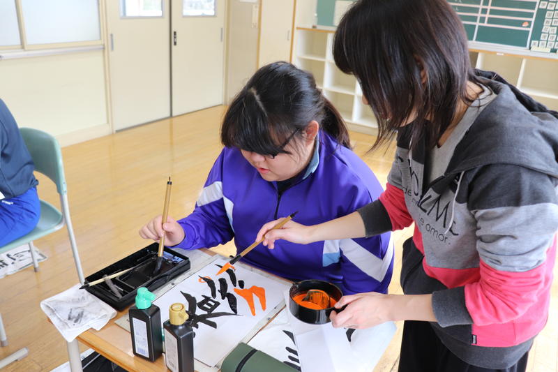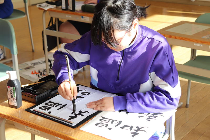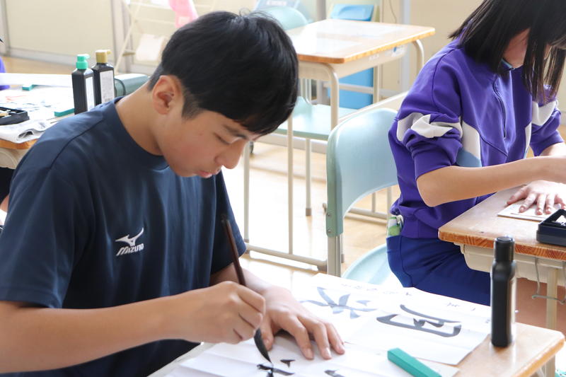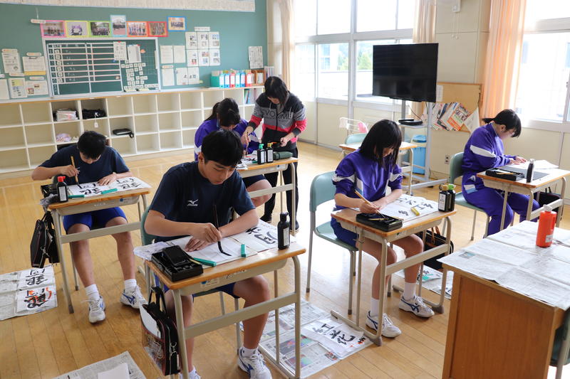 今日の2校時は、全校一斉で国語の授業を行いました。今日は生徒全員で書写を学習しました。