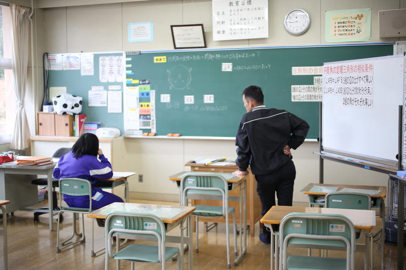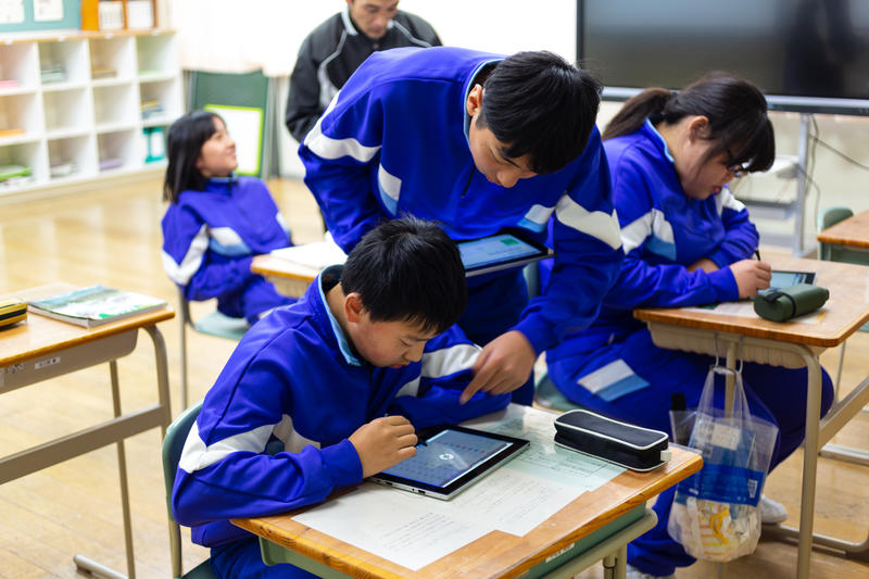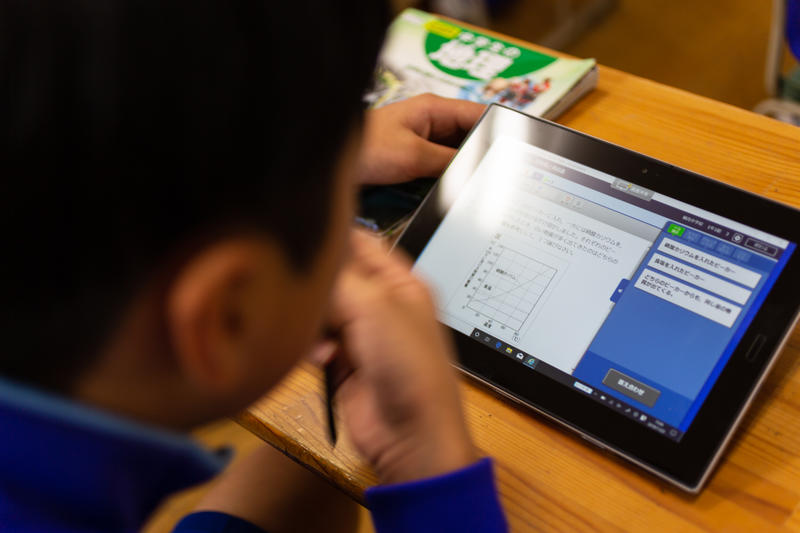 先日導入された「ミライシード」。授業だけではなく、ちょっとした空き時間にも活用できます。生徒達は、期末テストに向けて、「ミライシード」を使って学習していました。