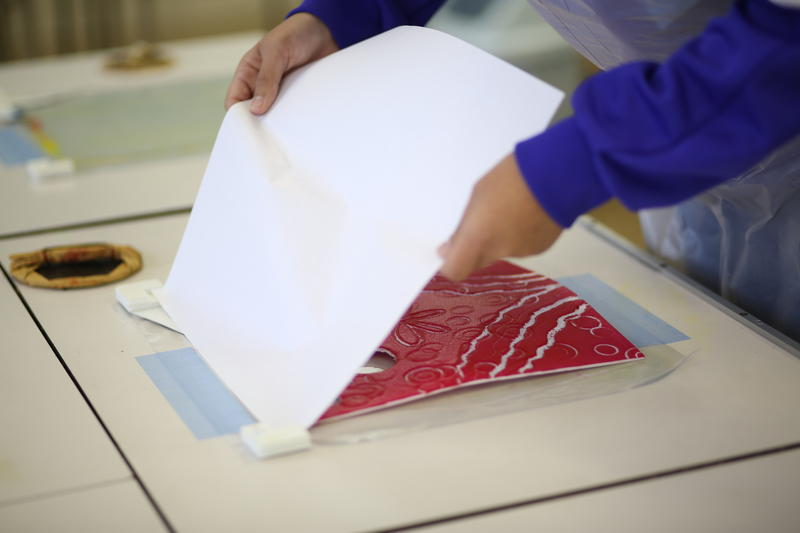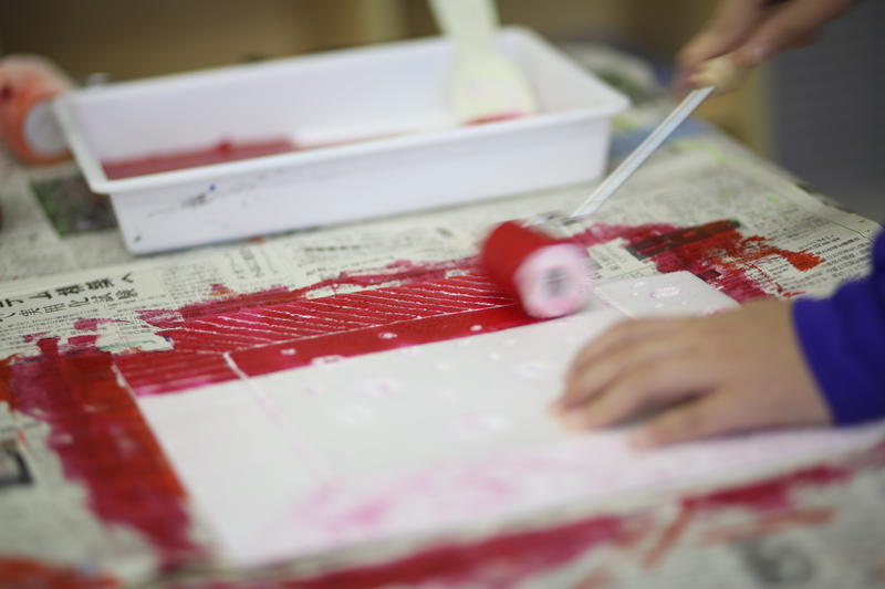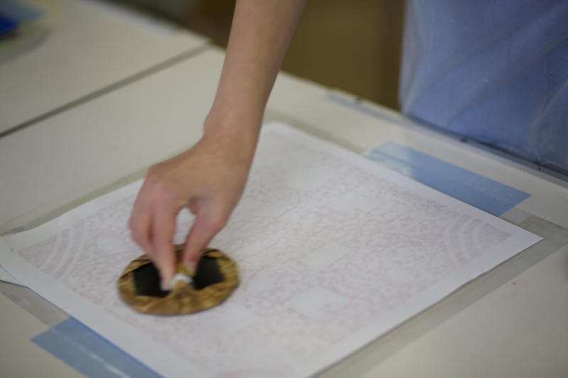 インクを版に塗り、転写していきます。