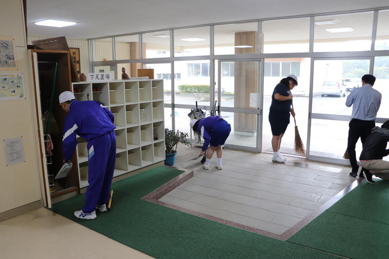 明日は、川前中学校・小白井中学校と3校合同で、「おでかけアリオス」が行われます。その会場が桶売中学校なので、今日の清掃は、玄関を中心に校内の清掃を行いました。