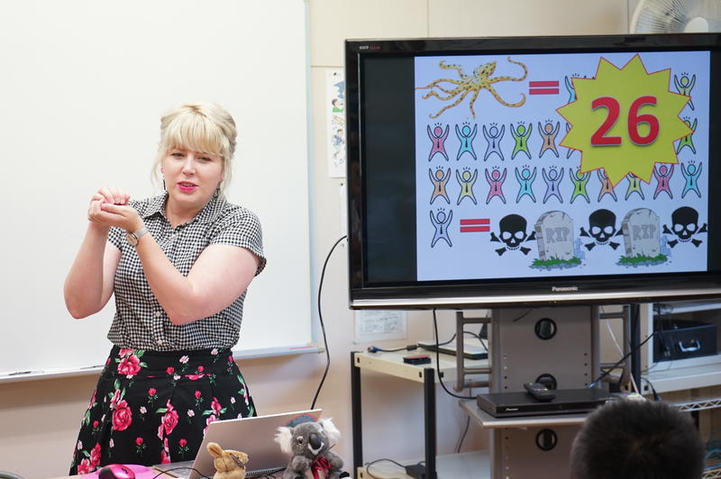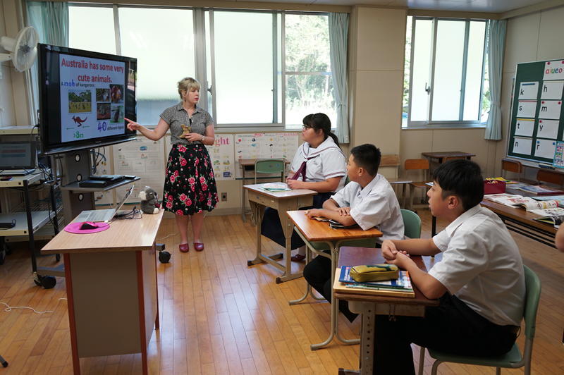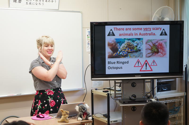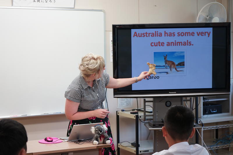 ALTジェシカ先生の勤務2日目です。1年生では、ジェシカ先生の故郷であるオーストラリアについて詳しく教えてもらいました。