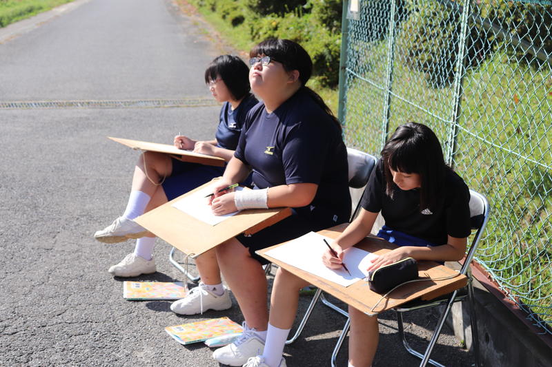 10月とは思えないほどの暖かさのなか、桶売の画伯たちは鉛筆を動かしていました。