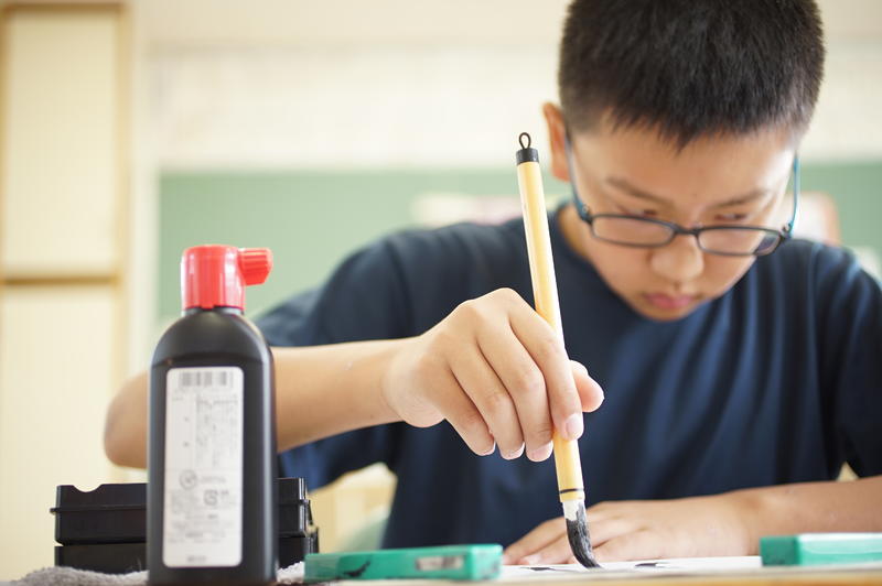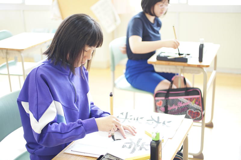 現在全学年で書写作品制作に取り組んでいます。この作品は方部書写巡回展にも出品します。