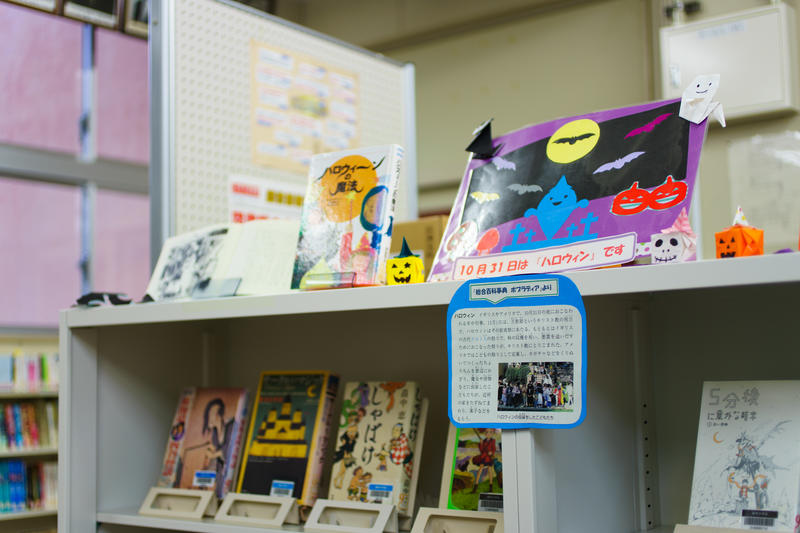 と、図書室に学校司書さんによるコーナーが作られました。そこには、ハロウィンとは何か説明も添えられています。ハロウィンって何??って聞かれたときに答えられますか?