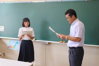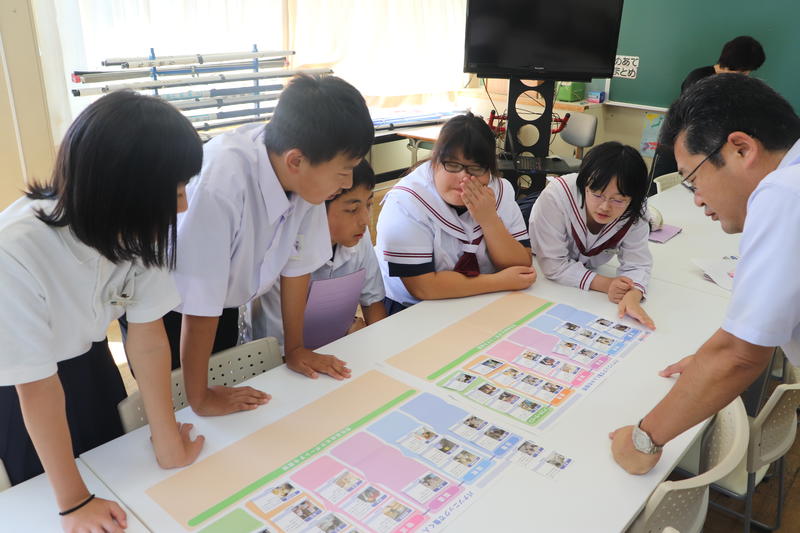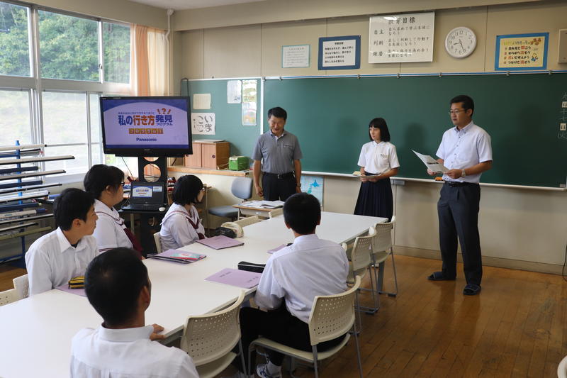 今日は、明日(9月18日)の午後に、川前中学校と合同で実施する、「私の”行き方”発見プログラム」の事前指導を行いました。これは、中学生が、自分の目指す職業や職種で求められる能力や働く意義について考えるというプログラムです。