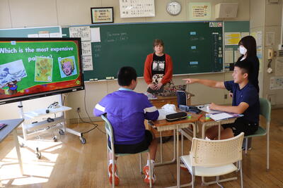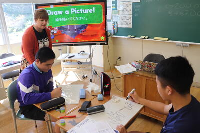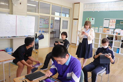 英語の授業は、他教科の教員も混じって、ゲームをとおして英語を学びました。