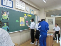 そこで、職員室前の黒板スペースを活用し、熱中症予防のための掲示板を養護の新妻先生が作成しました!