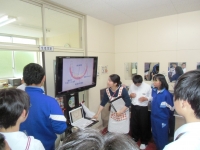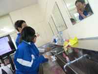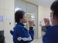 テスター実施の前に養護教諭から、「歯周病のお話」等をしてから、「ブラッシング指導」を行いました。