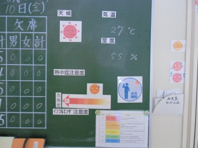 生徒自身が気温や湿度を肌で感じ、掲示板を見ることで、熱中症に注意し、安全に過ごすための行動ができれば、との願いからです!