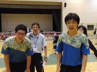 初日の個人戦では、男子ダブルスの宇佐見智くん・宇佐見新くんのペアが勝ち上がり、16日、県大会出場をかけての戦いで見事勝利し、市3位という成績で県大会への出場権を手にしました。県大会は7月25~27日(南相馬市)にて行われます。