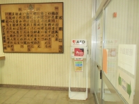桶売中学校では、玄関口にAEDを常備しています。